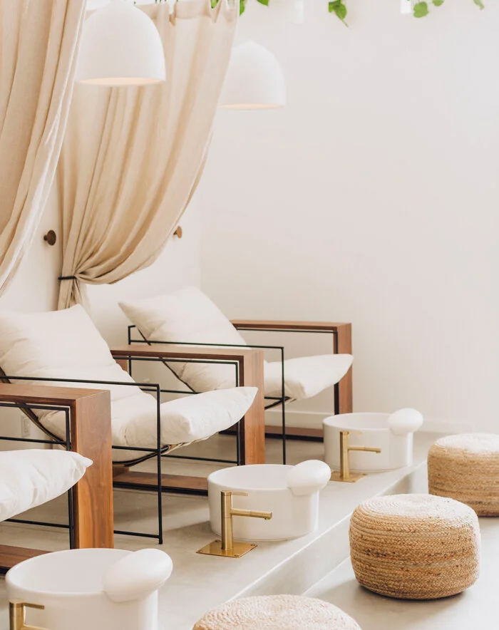 We have pipeless foot baths — intentionally sans jets to uphold the highest standards of hygiene. By eliminating water recirculation, we can thoroughly disinfect our pedicure bowls after each guest using hospital-grade disinfectant.